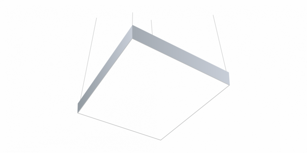 Светодиодный светильник в виде квадрата LiNE-PRO мощностью 380 Вт и 1900 мм изготовлен из алюминиевого основания, с установленными на него светодиодными модулями. Возможна различная цветовая температура - 3000К, 4000К, 5000К, 6000К. Боковины могут быть изготовлены из плотного ПВХ различного цвета, на выбор или светотехнического акрила и выполнять функцию рассеивателя. Блок питания внутри корпуса светильника. Монтаж на тросовых подвесах или непосредственно к потолку или стене.