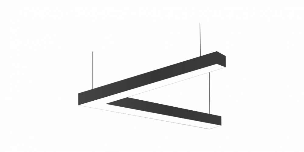 Светодиодный Угловой светильник LiNE-Pro 45гр. 500х500mm 40W 6000K черный предназначен для накладного или подвесного монтажа на тросовые подвесы. Изготовлен из сплошного сварного алюминиевого профиля в виде угла под 45 градусов. Высота установки светильника регулируется подвесом с цанговым тросовым зажимом и может варьироваться от 0,05 метра до 4 метров от основного потолка. Светильник имеет равномерную засветку по всей площади рассеивателя. Источник питания находится внутри корпуса. Торцевые заглушки входят в комплект. Возможно изготовление светильника с магистральной проводкой для соединения нескольких светильников в сплошную конструкцию.