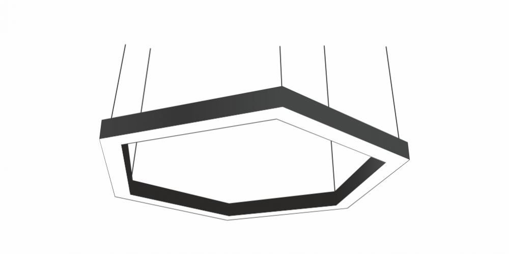 Светодиодный Шестиугольный светильник LiNE-Pro 6х250mm 60W 4000K черный предназначен для накладного или подвесного монтажа на тросовые подвесы. Изготовлен из сплошного сварного алюминиевого профиля в виде шестиугольника. Высота установки светильника регулируется подвесом с цанговым тросовым зажимом и может варьироваться от 0,05 метра до 4 метров от основного потолка. Шестиугольный линейный светильник имеет равномерную засветку по всей площади рассеивателя. Источник питания находится внутри корпуса.