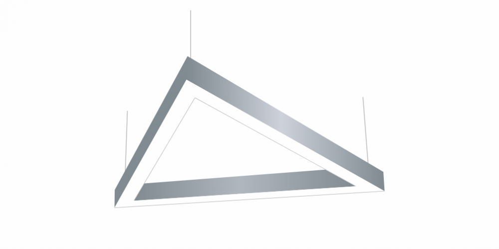 Светодиодный Треугольный светильник LiNE-Pro 3х750mm 40W 6000K серый предназначен для накладного или подвесного монтажа на тросовые подвесы. Изготовлен из сплошного сварного алюминиевого профиля в виде равностороннего треугольника. Высота установки светильника регулируется подвесом с цанговым тросовым зажимом и может варьироваться от 0,05 метра до 4 метров от основного потолка. Треугольный светильник имеет равномерную засветку по всей площади рассеивателя. Источник питания находится внутри корпуса.