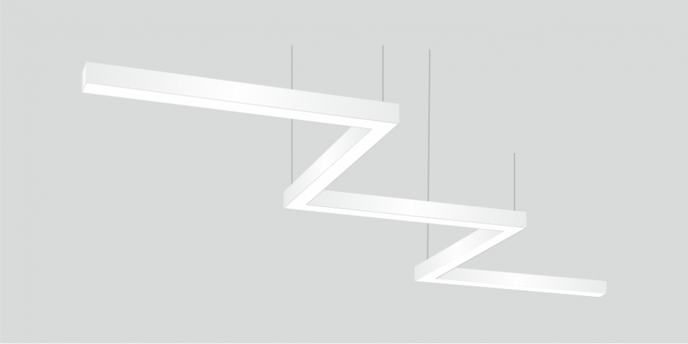 Фигурный светодиодный Светильник Зигзаг LiNE-Pro 5х500mm 45W 5000K белый предназначен для накладного или подвесного монтажа на тросовые подвесы. Изготовлен из сплошного сварного алюминиевого профиля в виде зигзага. Высота установки светильника регулируется подвесом с цанговым тросовым зажимом и может варьироваться от 0,05 метра до 4 метров от основного потолка. Светильник Зигзаг имеет равномерную засветку по всей площади рассеивателя. Источник питания находится внутри корпуса. Торцевые заглушки входят в комплект. Возможно изготовление светильника с магистральной проводкой для соединения нескольких светильников в сплошную конструкцию