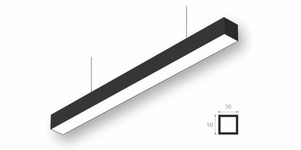 Линейный светодиодный Подвесной светильник LiNE-Pro 50x50 1200mm 40W 5000K Черный предназначен для подвесного монтажа на тросовые подвесы. Изготовлен из алюминиевого профиля длиной 1200 мм, мощностью 40 Вт c цветовой температурой 5000 K, цвет корпуса Черный. Высота установки светильника регулируется подвесом с цанговым тросовым зажимом и может варьироваться от 0,05 метра до 4 метров от основного потолка. Линейный светильник может использоваться для реечных потолков. Светильник имеет равномерную засветку по всей площади рассеивателя. Источник питания находится внутри корпуса. Торцевые заглушки входят в комплект.