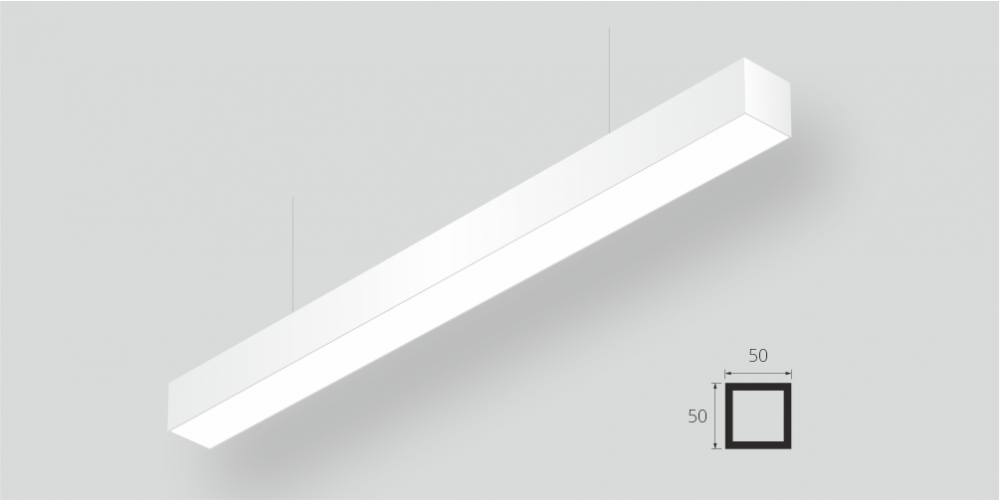 Линейный светодиодный Подвесной светильник LiNE-Pro 50x50 750mm 36W 3000K Белый предназначен для подвесного монтажа на тросовые подвесы. Изготовлен из алюминиевого профиля длиной 750 мм, мощностью 36 Вт c цветовой температурой 3000 K, цвет корпуса Белый. Высота установки светильника регулируется подвесом с цанговым тросовым зажимом и может варьироваться от 0,05 метра до 4 метров от основного потолка. Линейный светильник может использоваться для реечных потолков. Светильник имеет равномерную засветку по всей площади рассеивателя. Источник питания находится внутри корпуса. Торцевые заглушки входят в комплект.