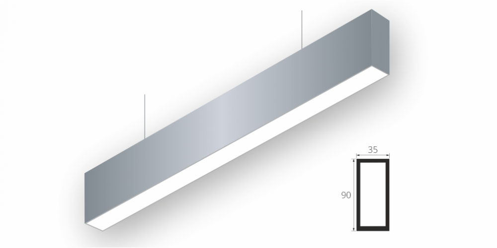 Линейный светодиодный Подвесной светильник LiNE-Pro 90x35 500mm 30W 3000K Серый предназначен для подвесного монтажа на тросовые подвесы. Изготовлен из алюминиевого профиля длиной 500 мм, мощностью 30 Вт c цветовой температурой 3000 K, цвет корпуса Серый. Высота установки светильника регулируется подвесом с цанговым тросовым зажимом и может варьироваться от 0,05 метра до 4 метров от основного потолка. Линейный светильник может использоваться для реечных потолков. Светильник имеет равномерную засветку по всей площади рассеивателя. Источник питания находится внутри корпуса. Торцевые заглушки входят в комплект.