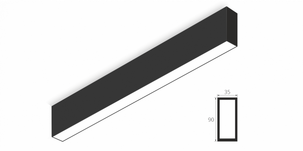 Линейный модульный светодиодный Накладной светильник LiNE-Pro 90x35 750mm 24W 4000K Черный предназначен для накладного монтажа на ровную поверхность. Изготовлен из алюминиевого профиля длиной 750 мм, мощностью 24 Вт c цветовой температурой 4000 K, цвет корпуса Черный. Светильники соединяются в сплошную линию с помощью комплекта линейного соединения и сплошной магистральной проводки. Светильник имеет равномерную засветку по всей площади рассеивателя. Источник питания находится внутри корпуса.